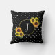 Chic Black Flowers Polka Dots Monogram Kussen