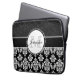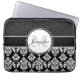 Chic Black Glitter White Damask Monogram Naam Laptop Sleeve