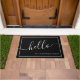 Chic Black White Script Hallo Familienaam Welkom Deurmat
