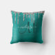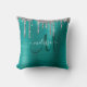 Voeg een aanraking van glitter en glanzen aan uw huisdecor toe met deze elegante gepersonaliseerde gooikussens. Deze sjabloon van het chemische ontwerp kenmerkt een groot donker blauwgroen manuscriptmonogram en jouw naam in wit om zich op een achtergrond van blauwgroen geborstelde metallische textuur te personaliseren die door een grens van faux zilveren het druppelen glitter wordt geaccentueerd. Een unieke cadeau voor verjaardagen, feestdagen en speciale gelegenheden. Speciaal voor u ontworpen door Extreme T - shirts!