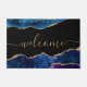 Maak kennis met uw gasten in stijl met deze gepersonaliseerde, paarse, zwarte gouden glitter agate doormat van het roos met de groet "welkome" in hand geschreven, moderne faux roos gouden scriptkalligrafie.