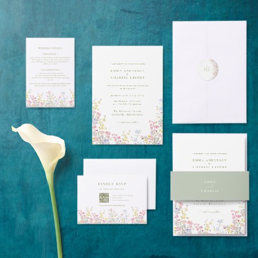 Chic Boho Garden Wildflowers Spring Summer Wedding Kaart
