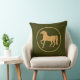 Een kic en aanpasbaar Sierkussen of Scatter Cushion, met een gouden-effect paardenmotief op een donkere Mossy Groene achtergrond die u kunt veranderen als u wilt. Het paardenmotief is een handbeschilderde illustratie van Judy Adamson.
