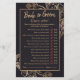 Elegant en chic vrijgezellenfeest game met gouden bloemen en bladeren met elegante handgeschreven scripttekstlettertypen op een zwarte achtergrond. Pas het aan met je eigen informatie. Dit object maakt deel uit van een mooi bruiloft collectie met alles wat je nodig hebt voor je grote dag. @Miri Creations - Creëer voor jou alleen met jou in gedachten. Alle rechten voorbehouden.