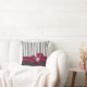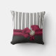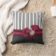 Stijlvolle houtskool grijs en witte gestreept decoratorkussen, met een mooie grafiek van een maroon satin als boog met een parelaccent. toevoeging aan elke ruimte en een geweldig cadeauidee.