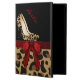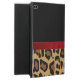 Stijlvol iPad Air 2-hoesje, met ingebouwde standaard en grafische weergave van een gekleurd en bruin jaguar-pelspatroon onderaan, met een stevig zwart bovenaan, van het hoesje. Grafische beelden van een rood satijnachtig lintje lopen over het midden en hebben een rode boog, rechts. Een fashioneerbaar paar jaguar-drukstiletto-hoge hakken versieren de voorste bovenkant van het hoesje. Pas de rode tekst aan. Het maakt een uitstekend cadeauidee.