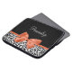 Geef een persoonlijk tintje door de naam van een meisje toe te voegen aan deze zwarte en witte kleurenlade van 15-inch neopreen laptophoes met een elegant verbrand oranje lintje dat vastzit in een geavanceerde boeg. Dit stijlvolle ontwerp van dierlijke afdruk is een plat gedrukt afbeelding en bevat geen effectief lint.