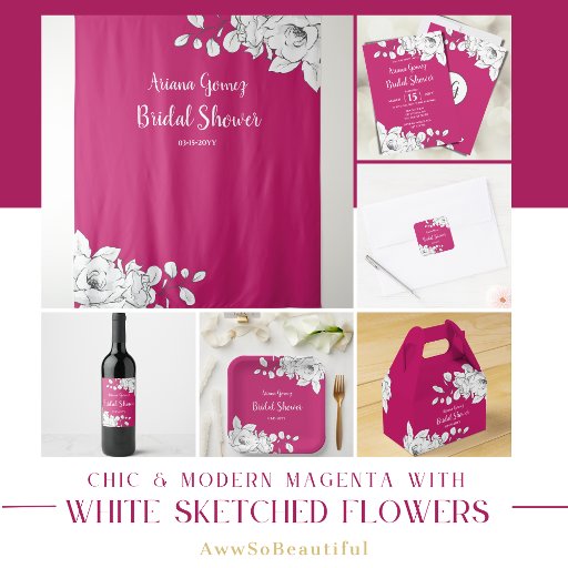 Chic Modern Magenta with Sketched White FlowersOntworpen door Amazing Beautiful Creative Designs
