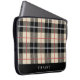 Het stijlvolle en stijlvolle Chic Monogram Thompson Camel Pset Pattern-sleeve is de perfecte manier om elke laptop tijdens het reizen beschermd te houden.  Met een  zwart, kameel (tan), rood en wit gingham flannelpatroon en zwarte typografie "Tiffany" die in iemands naam kan worden gewijzigd.  Geweldig geschenk voor iedereen die van de blik van het flannel houdt.