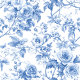 Chic Navy Blue French Toile Roses Floral Wallpaper Behang