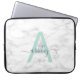 Chic Neo Mint White Marble Script Name Monogram Laptop Sleeve