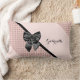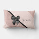 Een chique bleke Parijse roze en zwarte polka dot lumbale kussen met een girly zwart lint vastgebonden in een schattige boog. Personaliseer dit vrouwelijke lichtroze Franse geïnspireerde ontwerp door jouw naam toe te voegen. Vlak bedrukt afbeelding, geen echte boog.