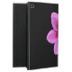 iPad Air 2-hoesje in straalzwart, met een foto van een grote roze bloem. Pas de roze tekst aan de voorkant van het hoesje aan om aan uw behoeften te voldoen.
