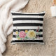 Voeg een aanraking van een modern kikkertje toe aan uw decor met deze trendy zwarte en witte, horizontale, gestreept kussen met een romantische roze en gele rozen. Pas dit prachtige florale gestreept ontwerp aan door jouw naam toe te voegen.