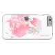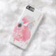 iPhone 6 hoesje, met een waterverf afdruk van een roze flamingo, met kleurrijke bloemen en veren, met versiering van het hoofd. Pas de koraalroze tekst aan, voor jezelf of als een groot cadeau aan haar.