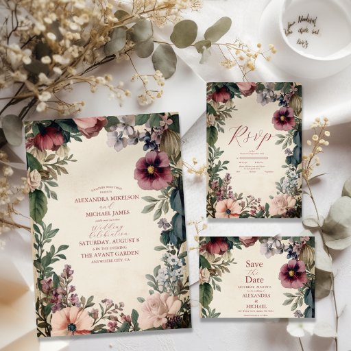 Chic Victoriaans Royal Floral Wedding All In One Uitnodiging