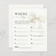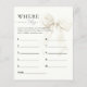 Stijlvolle witte strik "Where Were They" vrijgezellenfeest spelkaart met elegante script typografie op een heldere, minimalistische achtergrond. Ideaal voor het toevoegen van een leuk en interactief moment aan een vrijgezellenfeest, huwelijksdouche of vrijgezellenfeest, vooral voor feesten met een boogthema of zwart-wit. Gasten raden locaties van de foto's van het paar, waardoor ze lachen en herinneringen creëren. Coördineert met bijpassende uitnodigingen, inrichting en briefpapier in hetzelfde chique ontwerp met witte strik.