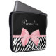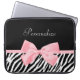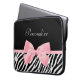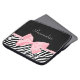 Met deze stijlvolle, stijlvolle 15-inch laptophoes van 15 inch kunt u uw fashionista aan. Deze mode accessoire heeft een trendy zwarte en witte zebraafdruk en een zacht vrouwelijk lichtroze lint gebonden aan een schattige meisjes buiging. Personaliseer je door de naam van je tienermeisje toe te voegen. Vlak gedrukt afbeelding, geen echt lint. Origineel Kunstauteursrecht ©OhSoGirly