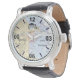 Nautische kaarten zijn evenzeer kunst als informatie. Dit horloge vangt de kusten van het grote Lake Michigan als de ontmoeting Chicago. Breedte- en lengteschalen die meestal op de rand van een grafiek worden weergegeven, zijn opnieuw ontworpen om minuten aan te geven (1 zwart-witte rechthoek = 1 minuut).