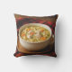 Een warme kom kippennoedelsoep met wortels en kruiden zit op een houten bord en een plaid deken.