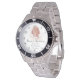 Ontworpen voor militaire tactici en Indiaanse fans van Geronimo, een horloge gepersonaliseerd met uw eigen naam en een historisch portret van Chief Geronimo, Apache, 1898, Fort Sills. Geronimo's oorspronkelijke naam was Goyathlay. De pastelportrettekening van E.A. Burbank, 1898, bevindt zich momenteel in het collectie van de Universiteitsbibliotheek van Yale. De geboortedatum van Geronimo wordt betwist. Sommigen zeggen dat hij geboren werd op 16 juni 1829, anderen zeggen in 1823. Zijn oorspronkelijke naam was Goyahkla. Hij overleed aan een longontsteking nadat hij van zijn paard werd gegooid en de hele nacht koud lag. Hij overleed als gevangene in Fort Sills op 17 februari 1909 en was bijna 90 jaar oud. Hij was een prominent leider van de Bedonkohe Apache die met veel moed en verzet tegen Mexico en de Amerikaanse regering vocht. Zijn ontwijkende tactiek wordt zeer bewonderd door het leger. Zijn laatste woorden zouden aan zijn neef zijn gezegd: "Ik had me nooit moeten overgeven. Ik had moeten vechten tot ik het laatste levende man was." Het geweer van Geronimo in Winchester is te zien op de West Point US Military Academy, USMA. Hij werd geëerd door zijn studies als militair tacticus.