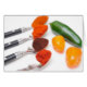 Vier verschillende soorten chilispoeder in de vorm van spoons. De poeders zijn onder meer Ancho, Paprika, Cayenne en Habanero.