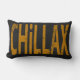 Chillax, chill, kickback, take it easy, relax Skateboard Word Art Pillow in denim black and yellow. The front of this reversible pillow says it all and needs no explaining. Perfect for inviting your guest to take a load off. The distressed grunge graphic letters are in light beige and white, while the flip side is a recoloring of "skateboard hourglass, offer a reverse co-ordinating idea. Great for your gameroom, living room or den. Chillax!!