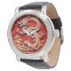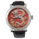 Red Dragon geïnspireerd op traditioneel Chinees papier in een cirkel met rode achtergrond + gouden achtergrond. Ontwerp op mannen horloge met Romeinse cijfers (half doorzichtig). Bijpassend wenskaart, vakantie briefkaart en sticker. Perfect voor Chinees hout Drakenjaar 2024.
