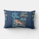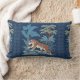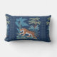 Een indigo blauw porseleinen tekening op het midden toont een majestueuze tijger in beweging, omringd door weelderige regenwoudelementen zoals grote bladeren.