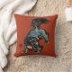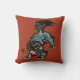 Kussen met een Chinees shi imperiale voogd leeuw (of shishi of Chinese Foo Dog) houtblok op een Chinees rode achtergrond. Modern en trendy, het perfecte Feng Shui kussen om kleur toe te voegen aan elke kamer.