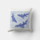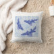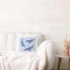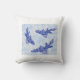 Op deze beachy blauwe en witte kussen zijn porseleinen blauw en witte koivissen op een zwaaiblauwe achtergrond te zien.
