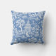 Zacht blauw Chinoiserie ontwerp op een kussen.