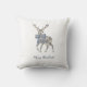 Voeg een trendy, stijlvol kerstkussen toe aan uw interieur. Beschikt over een blauw Frans chinoiserie rendier ontwerp met coquette boog en bewerkbare "Merry Christmas" tekst die u kunt aanpassen aan de begroeting van uw keuze.