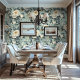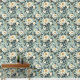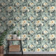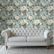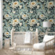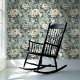 Chintz Style Witte Rozen op Blauwe Bloemen Behang