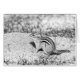 Een zwarte en witte schets met een korte foto van een chipmunk op de grond. Dit is een van de spaanders die op een kampeerterrein woont in Ticonderoga, NY. Dit afbeelding werd genomen door Debbie Quick of Debs Creative Afbeeldingen. Voor meer foto's van Debbie, surf naar haar website op: www.debscreativeimages.com