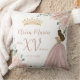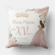 Personaliseer deze elegante blozen bloesem Quinceañera / Sweet 16 verjaardag gooi kussen gemakkelijk en snel. Klik op de knop Bewerken met ontwerpgereedschappen om de teksten verder te bewerken, lettertypen en lettertypekleuren te wijzigen. Met zachte waterverf bloesembloemen, een meisje gekleed in een mooie blush roze baljurk en een gouden prinsessenkroon. Perfect voor quinceanera, lieve zestien, 18e verjaardag, debutante bal en nog veel meer gelegenheden! Overeenkomende objecten beschikbaar in de winkel. c) Somerset Fine Paperie