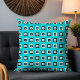 Dit stijlvolle ontwerp heeft een modern geometrisch patroon van zwart-witte lijsten op een turquoise achtergrond. #geometric #geometrical #square #modern #trendy #trending #style #stylish #design #designer #popular #work #school #gifts #mode #fashionable #cushion #pillow #throwpillow #home #decor #homedecor #kantoor