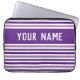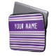 Chique Paarse & witte strepen Aangepaste naam Laptop Sleeve
