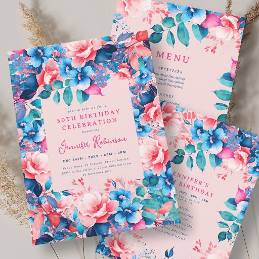 Vier in stijl met onze heldere en gedurfde uitnodigingen voor 50ste verjaardagsfeestjes. Word vijftig met onze prachtige waterverf bloemenuitnodigingen in blauw en roze. Bestel nu en maak van je vijftigste verjaardag een onvergetelijke!