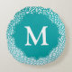 Chique witte luipaardvlekken op turquoise monogram rond kussen