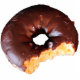 Foto van een chocolade met geelbruine koekjes met een zeer grote beet eruit. Ja!