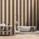 A classic double rugby stripe wallpaper in a rich preppy palette of barn red, smoke blue, navy, chocolate, army green, and khaki. This sporty, tailored stripe works beautifully in family rooms, men’s studies, home offices, game rooms, teen boy spaces, and farmhouse-inspired interiors. The clean rhythm of the stripe gives it a timeless look that feels masculine, polished, and easy to coordinate with solid fabrics and wood tones.