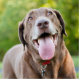 Happy chocolade Labrador Retriever hond aan het pannen in het park