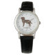 Destei's originele cartoon illustratie van een chocoladebruine kleur Labrador Retriever fokhond. Er is ook een aanpasbaar tekstgebied voor een naam of andere aangepaste tekst. De wijzerplaat is gemaakt van eenvoudige zwarte lijnen.