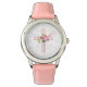 Dit horloge heeft een Christelijk kruis in het midden dat roze en wit is met roze rozen in het midden. De achtergrond van het gezicht is roze met witte markeringen en cijfers voor de tijd met monogram initialen voor u om te personaliseren. Het perfecte geschenk voor religieuze gelegenheden zoals eerste communie en bevestiging. Ontworpen door kunstenaar ©Susan Coffey.