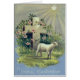 Stuur dit voorjaar iemand een paasgroet! Deze prent toont een lam voor een Christelijk kruis.