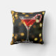 A vibrant red cocktail garnished with a classic peppermint candy cane and surrounded by golden lights bokeh creates a festive atmosphere perfect for the holidays