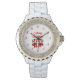 U kunt mijn prachtige kersttekening van twee snoepstokken bewonderen, verpakt in een prachtig rood boog stropdas, met vrolijk kerstfeest. Ik noem deze tekening "Christmas Candy Canes", toegevoegd aan dit witte emaille-horloge, voorzien van strass-steen. Dit witte emaille horloge met strass voor vrouwen is het perfecte kerstcadeau om iemand een vrolijk kerstfeest te wensen."