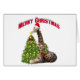 Schattige kerstGiraffe met zijn kerstman en versierde kerstboom - hij plaatst de ster bovenop de boom