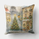 Christmas in Paris Watercolor Eiffel Tower Throw Pillow – Winter Holiday Paris Decor
